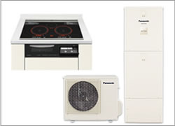 エコキュート高火力・高効率のIHクッキングヒーターと大気熱を利用して、湯を沸かすエコキュート。